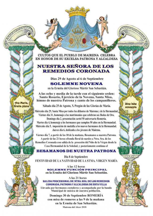 El próximo Sábado 25 de Agosto de 2018 a partir de las 22 horas tendrá lugar el X Pregón de las Glorias de María. Este año corre a cargo de Don José Manuel Jiménez Delgado, con la presentación de Doña María Eugenia Jiménez Carrión. El acompañamiento musical correrá a cargo de la…